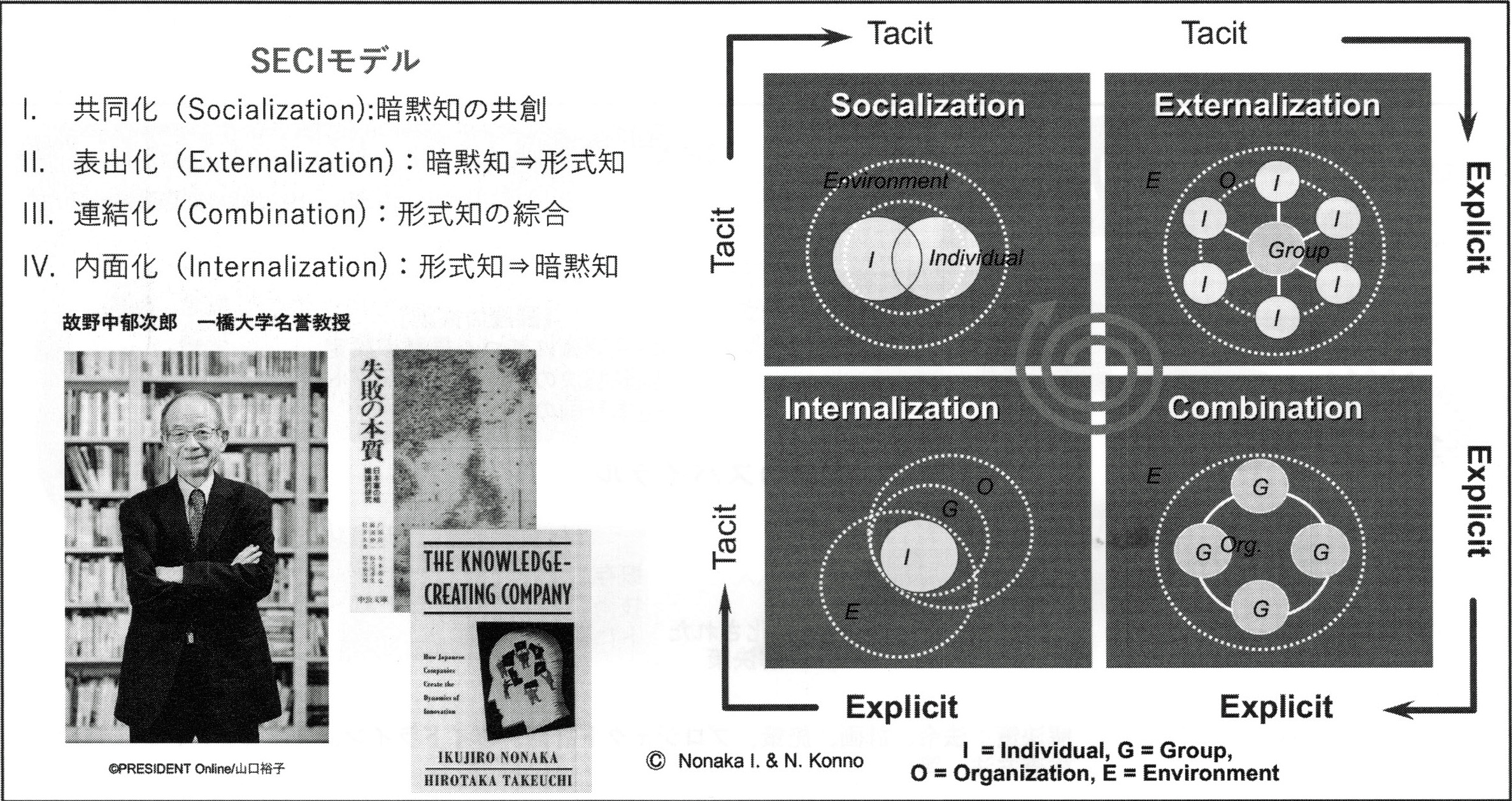 これは大体20年ぐらい前からご指導いただいているのですが,野中郁次郎先生は日本国内では「失敗の本質」という本の著者として広く知られていますけれども,実は日本よりも世界的に評価されている方で,「知識創造理論」というマネジメント理論を生み出されて,それが世界的なナレッジマネジメントブームを1990年代に起こしまして,いろんな面で今でも先生は世界的な経営学者として尊敬されています。